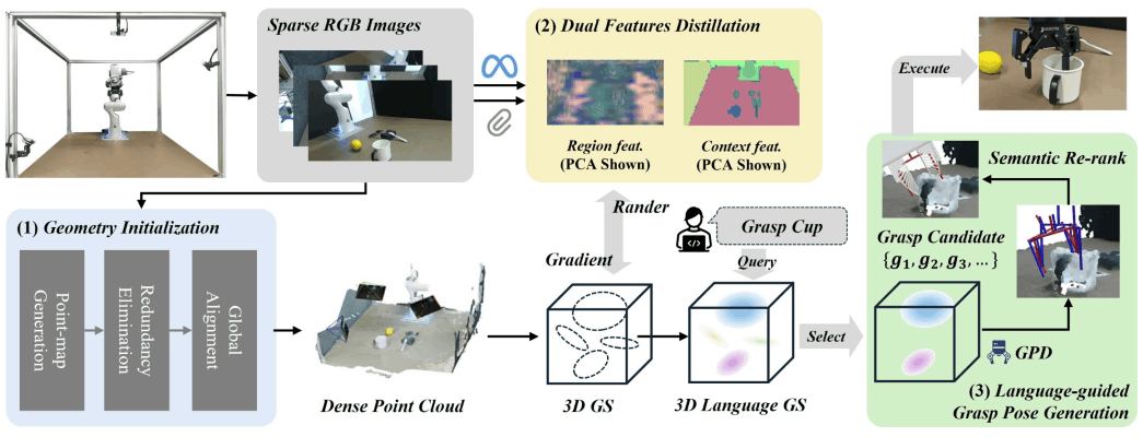 Sparse-View 3-D Language Gaussian Splatting for Zero-Shot Robotic Grasping